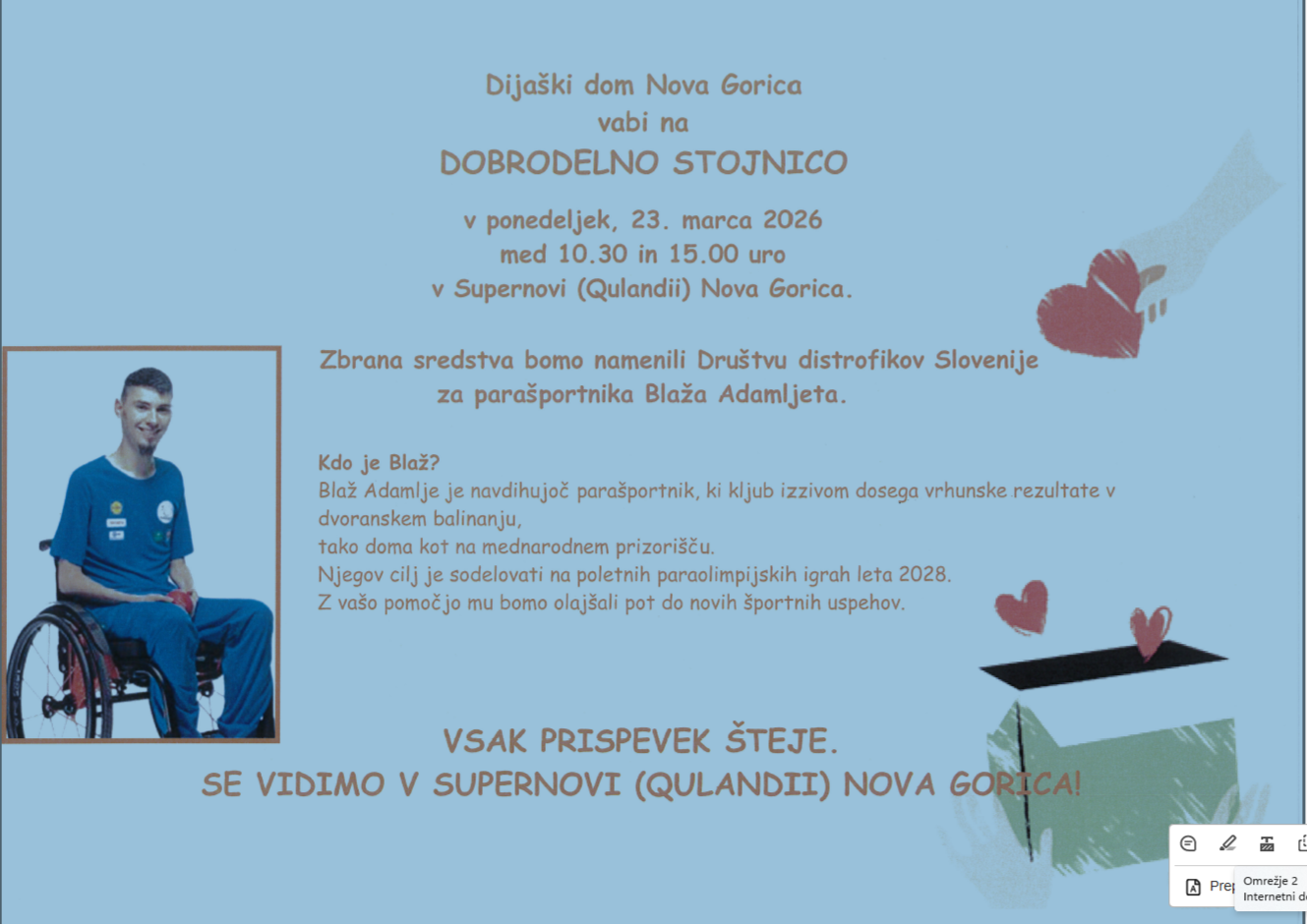 Avtor: DDNG | 23. 3. 2026 | Dogodki DOBRODELNA STOJNICA2026-03-232026-03-23https://ddng.si/wp-content/uploads/2017/02/ddng-logo_top2_180.pngDijaški dom Nova Goricahttps://ddng.si/wp-content/uploads/2026/03/stojnica-1.png200px200px Zadnje objaveNenapovedana vaja evakuacije v Dijaškem domu Nova GoricaDOBRODELNA STOJNICAINFORMATIVNI DAN 2026